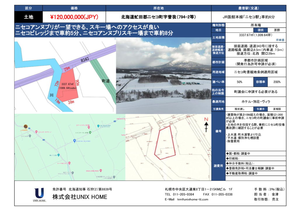 北海道虻田郡ニセコ町字曽我(794-2等)土地