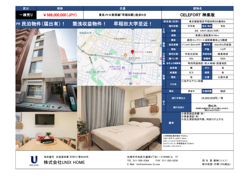 民泊物件(届出有)!築浅収益物件!早稲田大学至近!